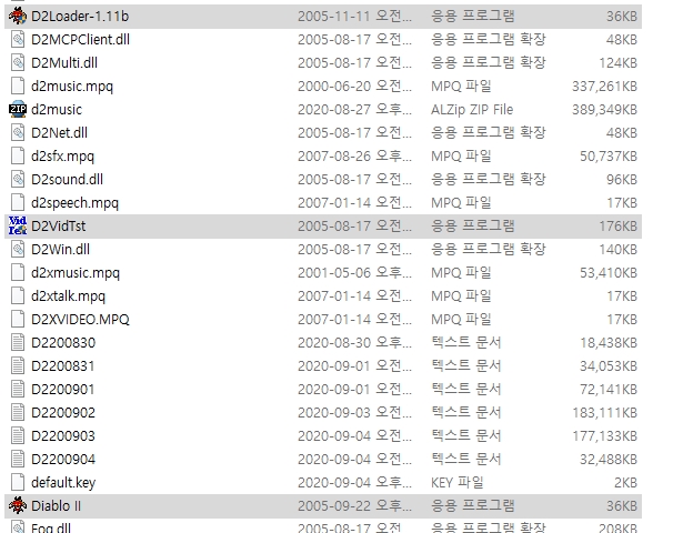디아블로 2가 설치된 폴더로 가셔서 아래 그림에 체크된 파일들을 살펴봅시다.